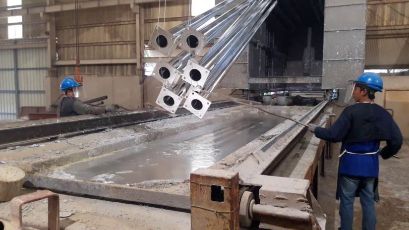 Hot Dip Galvanizing is a unique process. When clean steel is immersed into molten zinc, a series of zinc-iron alloy layers are formed by a metallurgical reaction between the iron and zinc, providing a robust coating which is an integral part of the steel.
