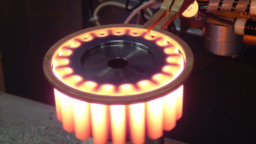 Induction hardening is a process used for the surface hardening of steel and other alloy components. The parts to be heat treated are placed inside a copper coil and then heated above their transformation temperature by applying an alternating current to the coil.